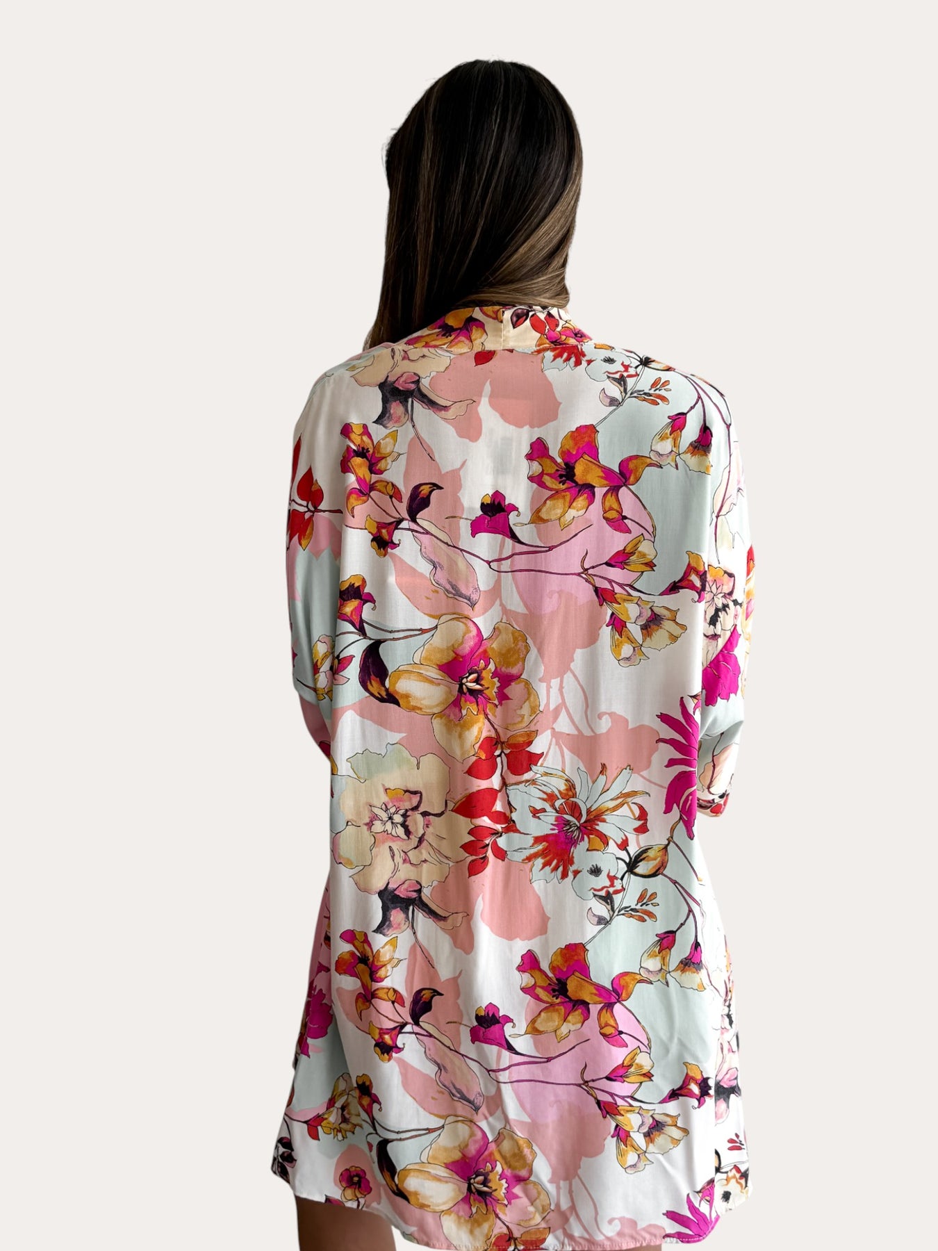 Kimono Cielo, una prenda versátil que combina elegancia y comodidad. Confeccionados en delicadas telas de gasas y viscosas, ofrece una caída fluida y transpirable perfecta para climas cálidos. Sus diseños y estampados únicos te permiten expresar tu estilo personal con cada uso.