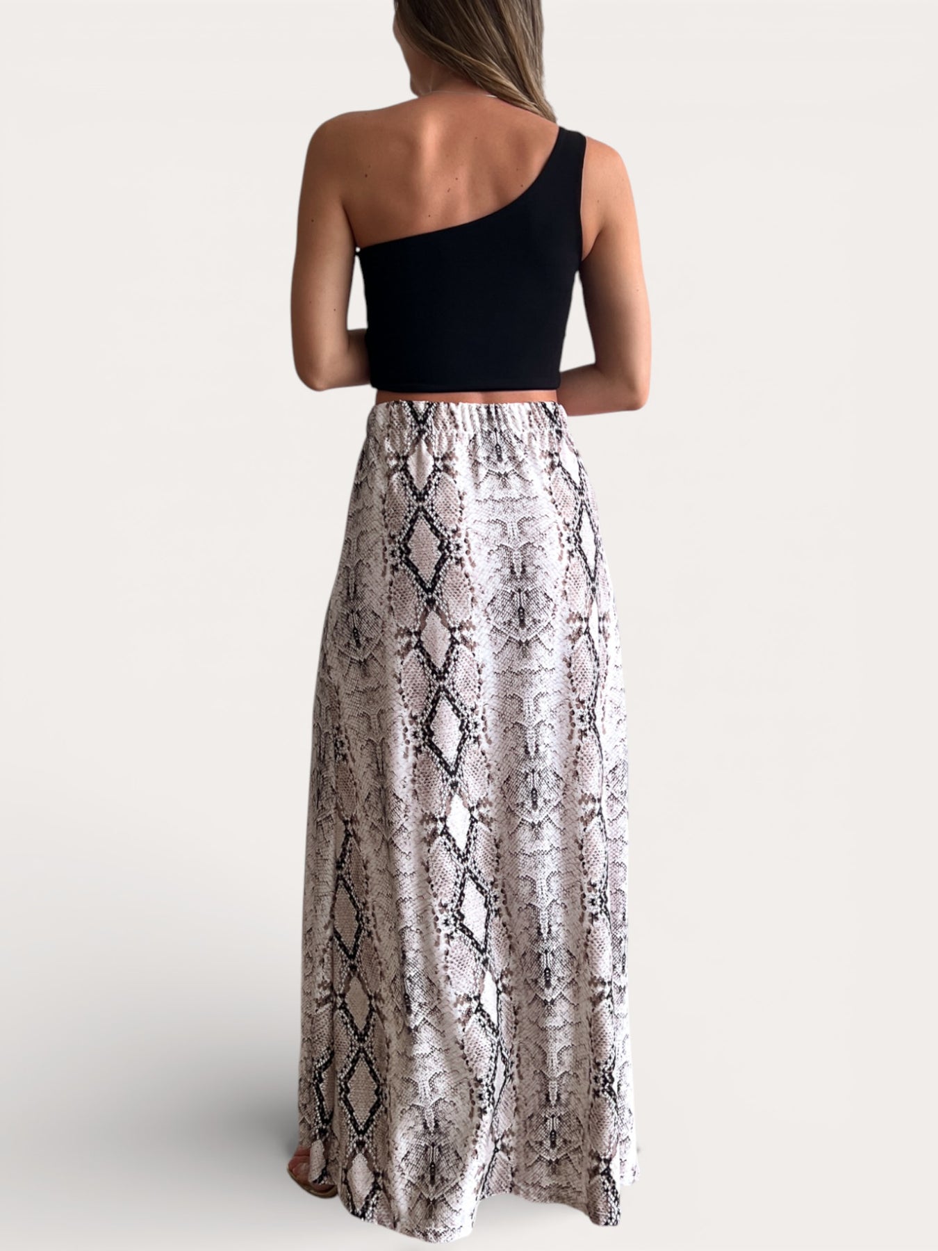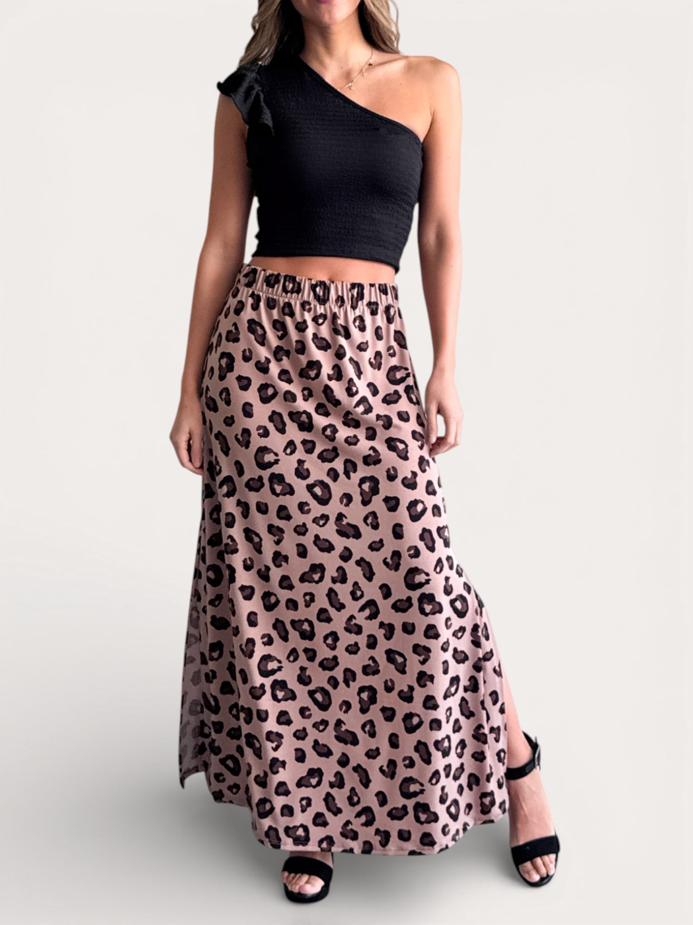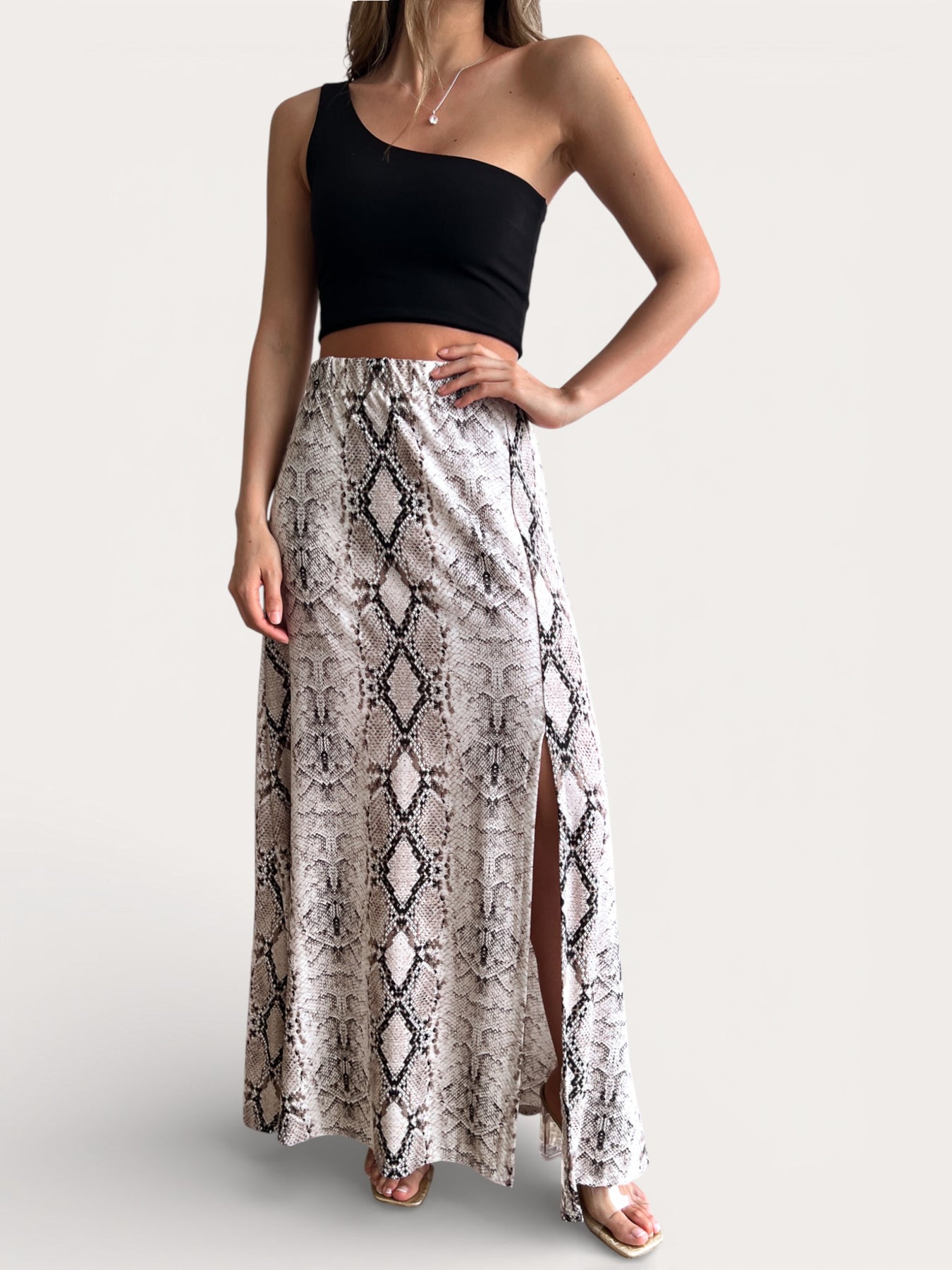 la Falda Gabi es de esas prendas que te hacen sentir linda apenas te la pones.Es larga, con aberturas laterales que te dejan moverte con total comodidad y le dan ese toque sutilmente sensual y elegante. La cintura elasticada se adapta perfecto a tu cuerpo, así que no aprieta y la puedes usar todo el día feliz.