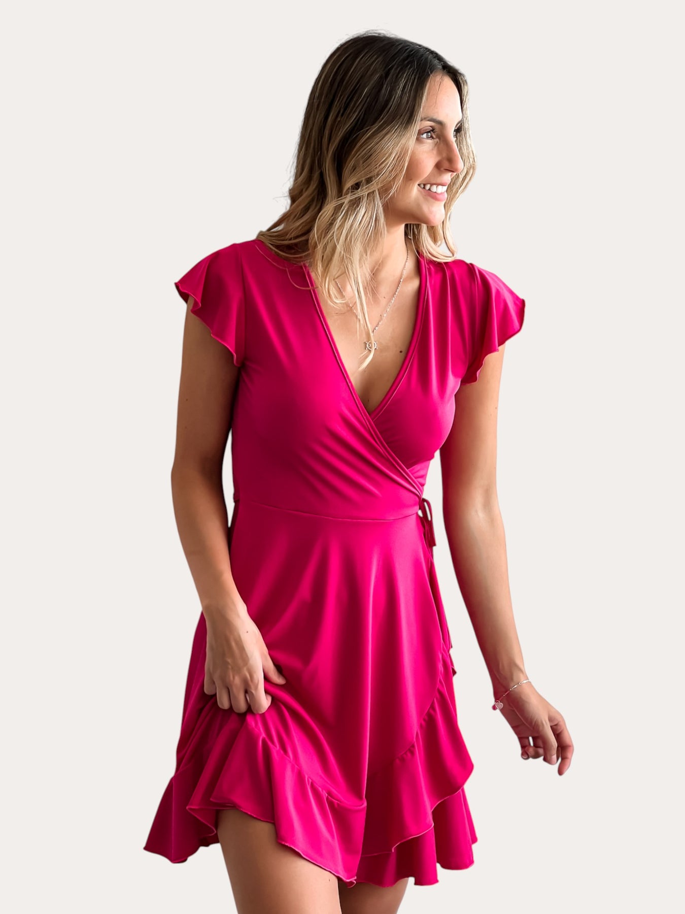 Descubre el Vestido Santi, la prenda perfecta para lucir elegante sin complicaciones. Diseñado con un escote cruzado y amarra en cintura que simula un envolvente, te brinda una silueta favorecedora al instante. Sus mangas abullonadas con delicado vuelito en lycra milan elasticada añaden movimiento y sofisticación a cada paso. Cómodo, versátil y con ese toque especial que te hace sentir segura. Ideal para cualquier ocasión donde quieras brillar con estilo.